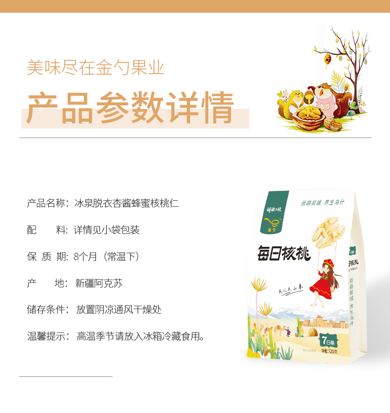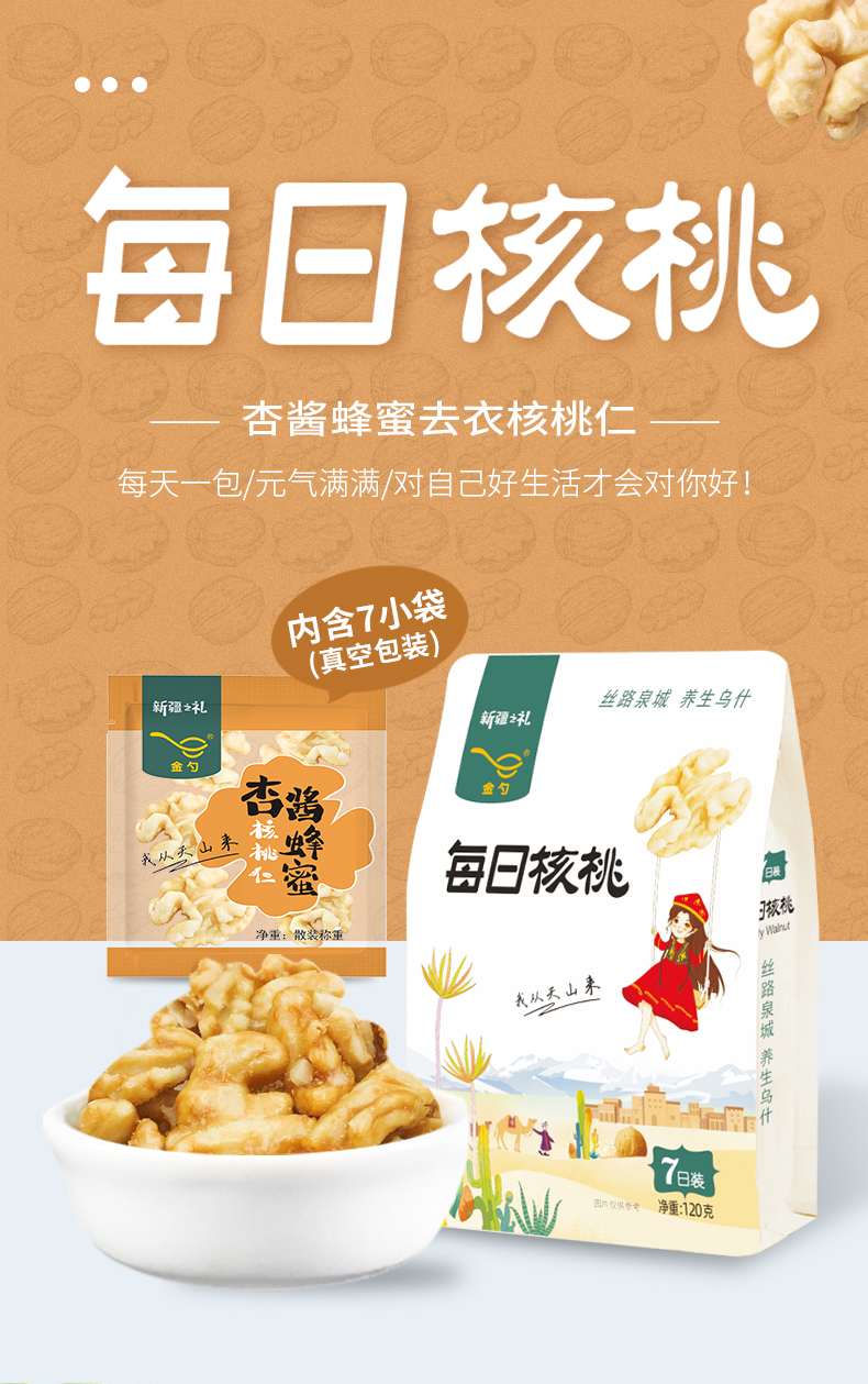 金勺新疆每日核桃去皮蜂杏醬桃仁童孕婦零食核桃堅(jiān)果熟即食核桃仁