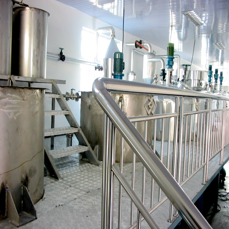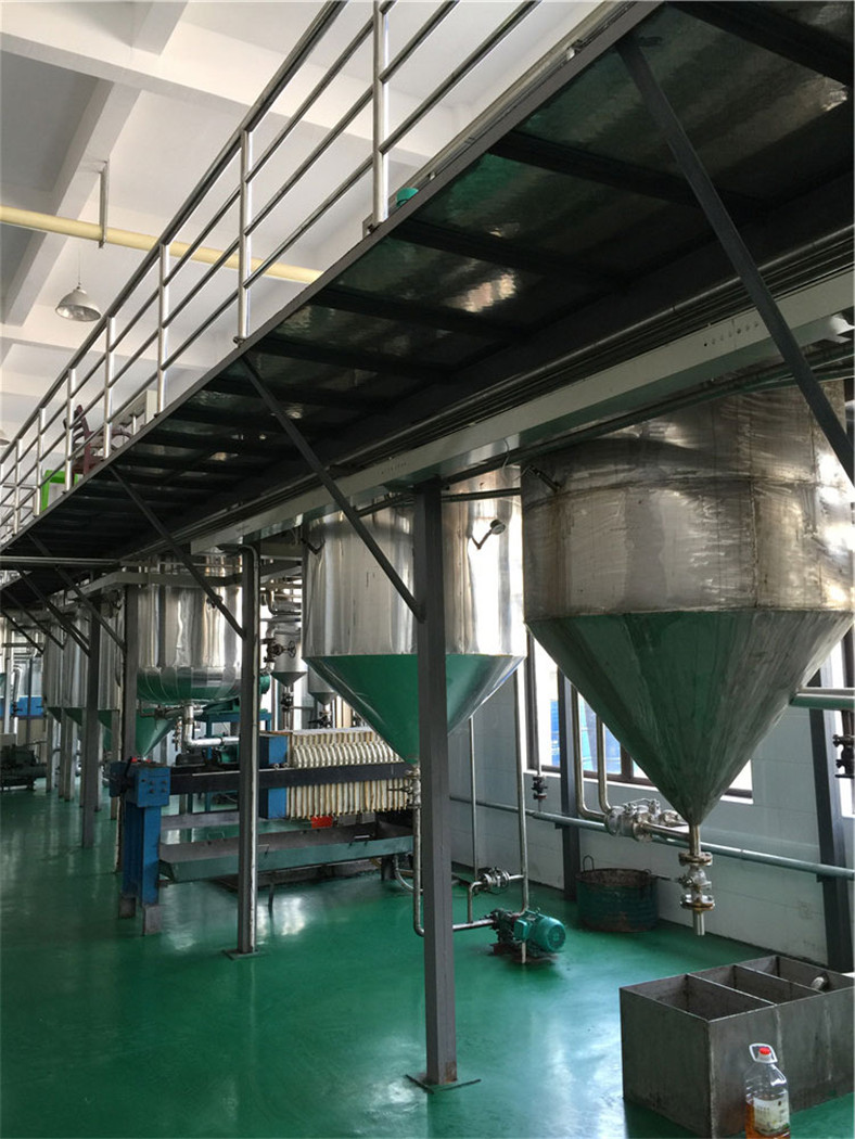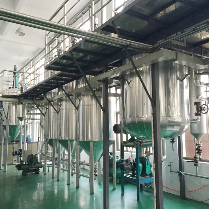 • 產品描述: 本設備配置主要設備全部為不銹鋼設備,車間生產時只需要高溫導熱油鍋爐,是低能耗配置,溫度速度監控采用程控制與人工結合。執行標準為植物油出口歐盟標準。苯并芘-a降低到0.5PPB以內。 采用U管加熱避免在煉油、水洗、脫色以及脫脂工序的物質殘留,更好的完成各道工序要求。本工藝中脫臭采用三級機械真空取代能耗高的蒸汽噴射真空,比如機械真空電負荷11KW就可以完成四到八噸煉油的需要