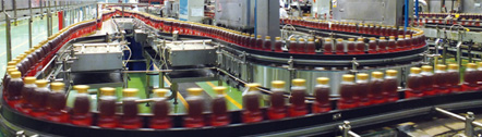 生產線運行效率的高低,與輸送線的配置有很大的關系。在輸送線的配置上須考慮到后段設備短暫停機(例如:更換標簽等)時,對前段設備的運行不能產生影響,同時應該能將前后段的設備良好的銜接在一起,才能使整條生產線達到較高的運行效率。我司的生產線布置充分考慮了客戶投資與生產線使用效率的相互關系,在引進國外技術的基礎上,可以很好的達到上述要求。該系統采用技術,機械結構為全新設計,多數構件采用沖壓或折彎成形,具有剛性好 、重量輕 、互換性好的優點。傳動方式,運轉可靠,維修方便,適用于輸送直徑φ40~φ110 mm瓶子。無壓力輸送系統,依靠實時速度信號采集和反饋及自動差速控制系統,能夠實現輸送帶上的瓶在運動狀態中由多列平穩變更為單列,而不出現相互擠壓現象。 電氣控制系統采用PLC控制整個實瓶輸送緩沖系統的運行,自動實現運行速度加減速、自動緩沖的功能。